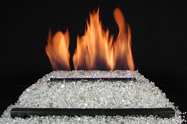 Our vent free burner systems come standard with a built in manual control valve for easy operation. Optional remote controls are available. Select from over thirty fireglass colors, or mix any combination of colors to suit your individual taste!