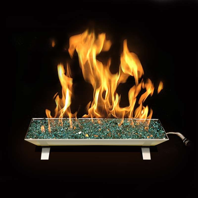 This Stainless Steel 21" rectangular pan burner is a fine addition to your indoor or outdoor fireplace. This pan burner's 1/2" pipe burner is made from 16 gauge stainless steel and has an internal baffling that allows the gas and flame to spread evenly across the pan, creating a beautiful balanced flame. Place our Ceramic FireBalls, FireStones or our popular Fire Glass on top for a very beautiful, modern and elegant look that is sure to impress everyone in sight.?