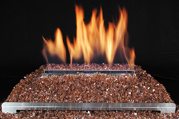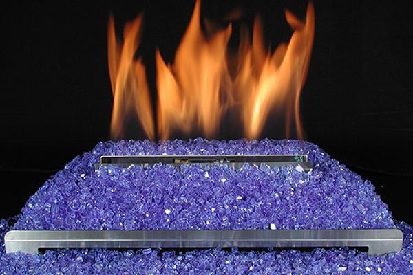 Our vent free burner systems come standard with a built in manual control valve for easy operation. Optional remote controls are available. Select from over thirty fire glass colors, or mix any combination of colors to suit your individual taste!